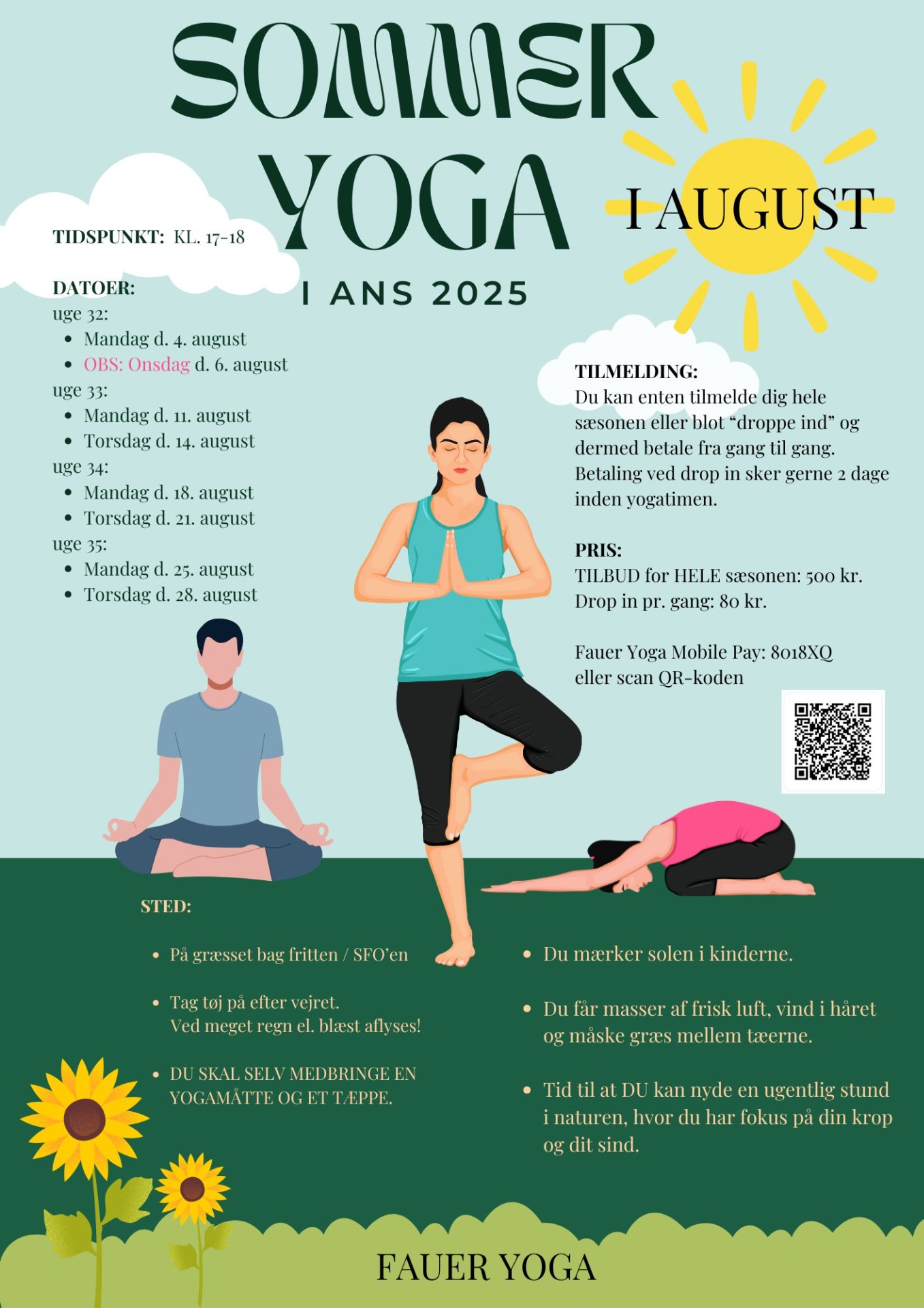 Fauer Yoga tilbyder ENDNU et UDENDØRS yogaforløb på 8 gange i AUGUST, hvor vi dyrker yin og yang yoga under åben himmel.